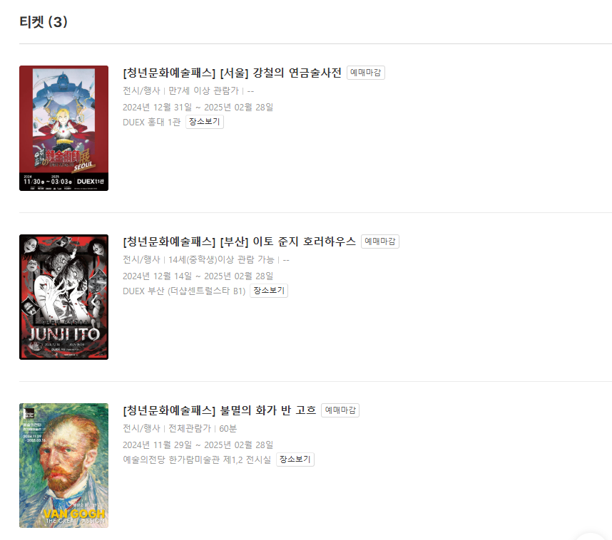 👉 모든 공연과 전시가 지원되는 것은 아니니, 예매처에서 리스트를 확인해야 한다.