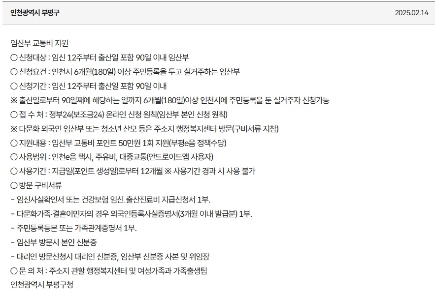 👉 인천시 임산부 교통비 지원 신청하러 가기: