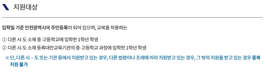 - 인천에 거주하지만 타 지역에서 공부하는 학생들도 동일한 혜택을 받을 수 있도록 보장