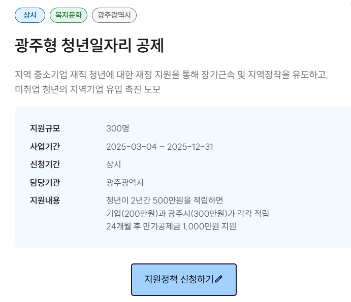 또한 광주시가 제공하는 다양한 청년 지원 정책과 연계 가능하여 장기적으로 더 많은 혜택을 받을 수도 있습니다.