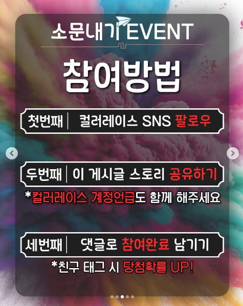 - SNS(인스타그램, 페이스북, 블로그 등)에 컬러레이스 참가 소식을 공유!