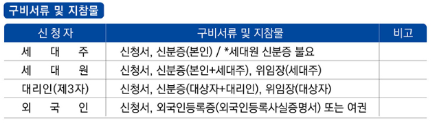 ✅ 세대주 신청 시: 신청서, 본인 신분증 (세대원 신분증 불필요)