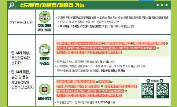 카드는 신청 후 약 2주 이내에 발급되며, 기존 카드 보유자는 자동 충전 방식으로 지원금을 받을 수 있습니다.