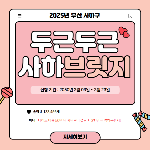 2025년 부산 두근두근 사하브릿지에서 연애만 해도 50만 원? 결혼하면 2천만 원 지원!