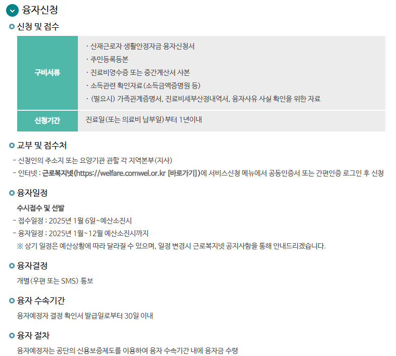 - 근로복지공단에서 신청자의 자격 요건을 검토한 후 승인 여부 결정