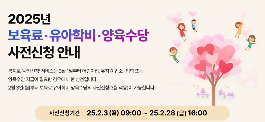2025년 영유아 보육서비스(보육료, 유아학비, 양육수당) 사전신청 !