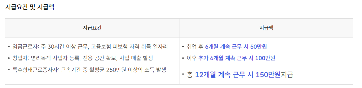 ✔ 취업 후 6개월, 12개월 근속 시 최대 150만 원 지급