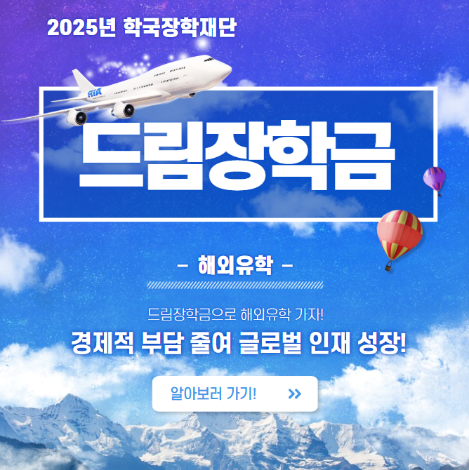 해외 유학을 꿈꾸지만 경제적인 이유로 망설였던 학생들에게 반가운 소식이 찾아왔습니다. 한국장학재단에서 2025학년도 우수고등학생 해외유학 장학금(드림장학금) 신규 장학생을 모집합니다.