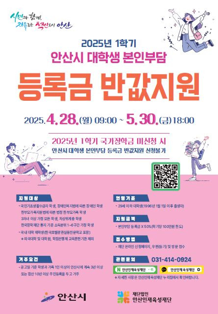 2025년 1학기 안산시 대학생 반값등록금 지원 신청하는 방법!