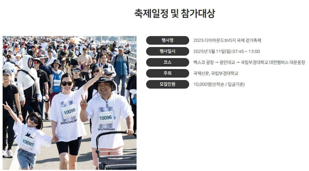 🚀 2025 다이아몬드브리지 국제걷기축제, 지금부터 모든 정보를 알려드립니다! 👇👇